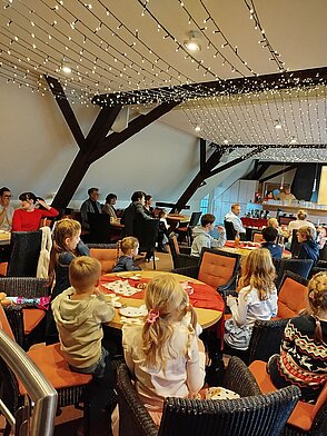 Nach einem gemeinsamen Weihnachtslied ging es für alle Kinder und Eltern in die Gastronomie.