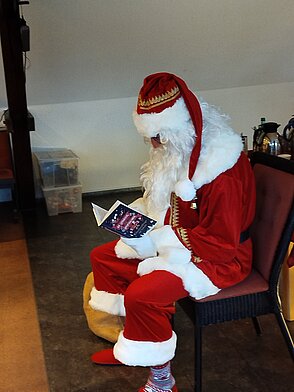 Die Kinder der Bambinigruppe wurden alle namentlich nach vorne gerufen und nach eine kleinen Ansprache durch den Nikolaus, mit eine Gabe aus dem Beutel beschenkt. Die größeren Kinder und auch die Geschwisterkinder erhielten ebenfalls alle ein Geschenk vom Nikolaus. So wie der Nikolaus gekommen war, so ging er auch wieder - durch die Hintertür.